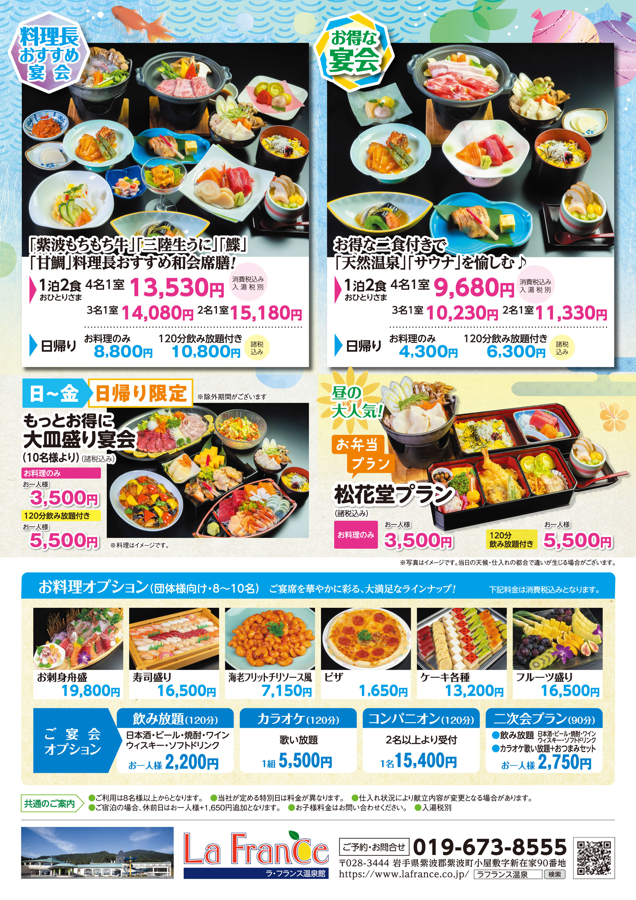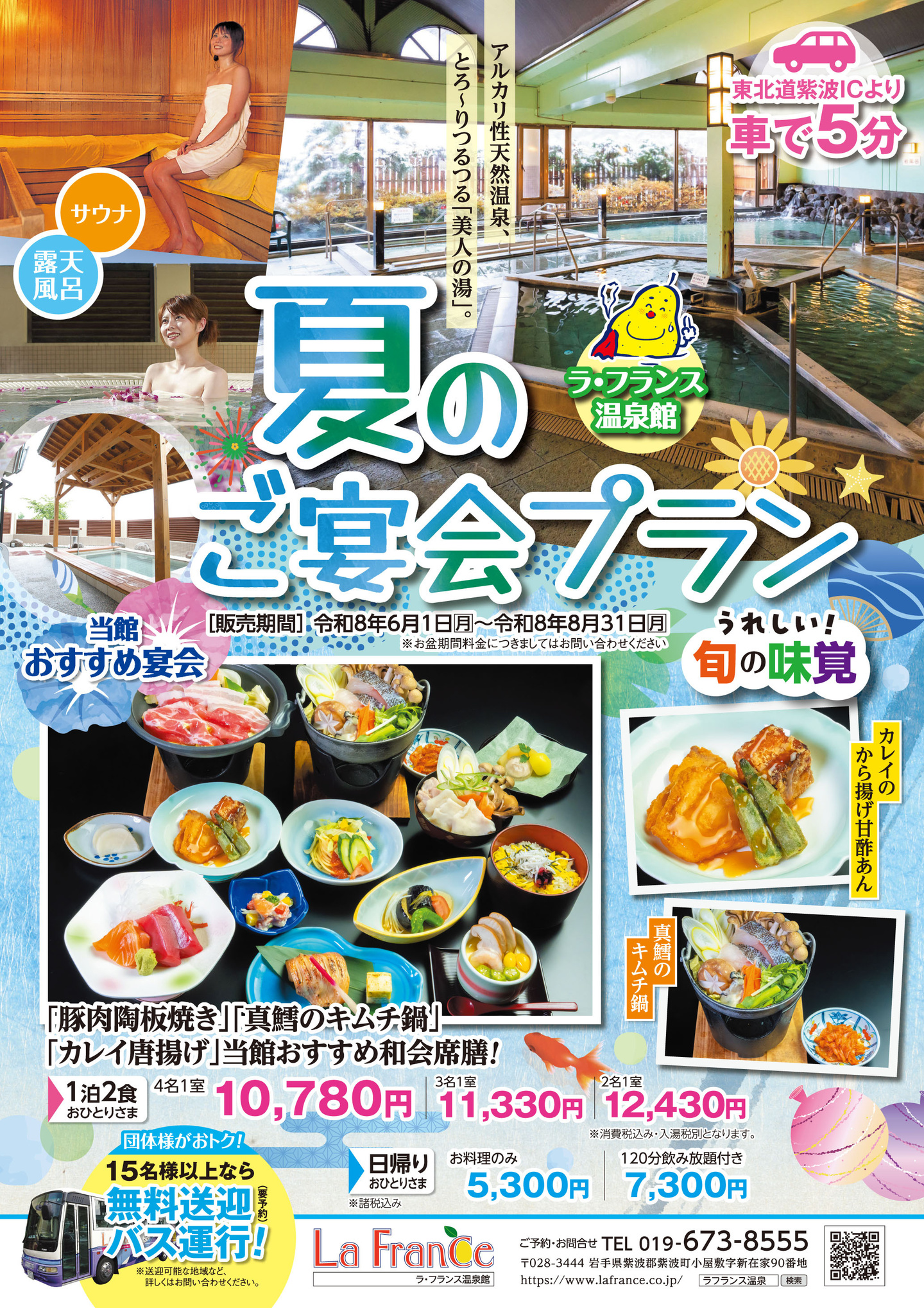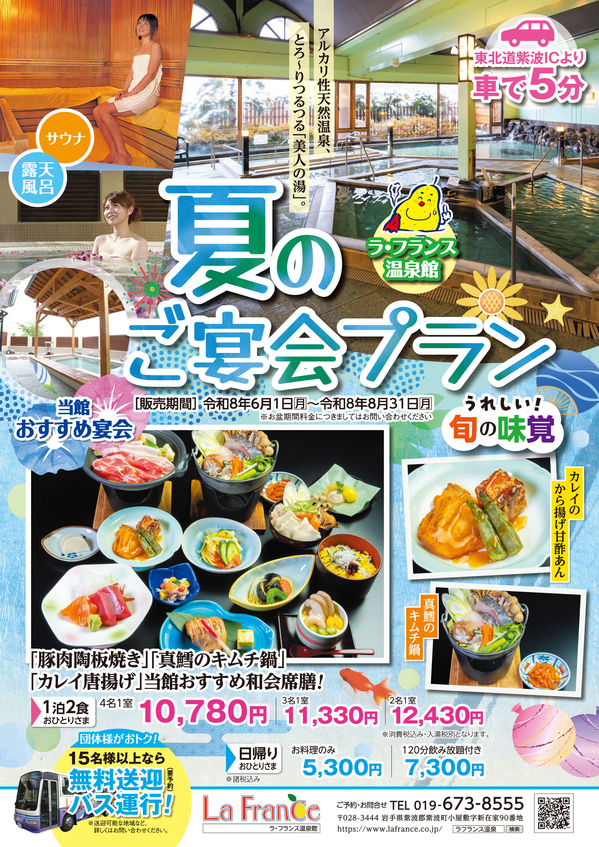 令和7年度 ラ・フランス温泉館 日帰り入浴・レストラン営業時間のご案内